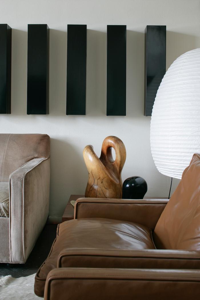 NYC home of designer Brad Ford: PK 31 armchairs by Poul Kjærholm (1959) and an Akari light sculpture (table lamp) by Isamu Noguchi (c.1950s). Photography by Eric Striffler. / Remodelista
