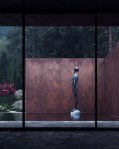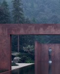 Rose is a guesthouse made of concrete, weathering steel, glass and water. The steel exterior seems private and fully immersed in the wild nature, whilst the inner part of the building is opposite – open and fragile due to the floor-to-ceiling windows. The layout is designed as a freely flowing space with transforming functional zones. An owner can move the walls and convert the space into one social ground floor for parties
