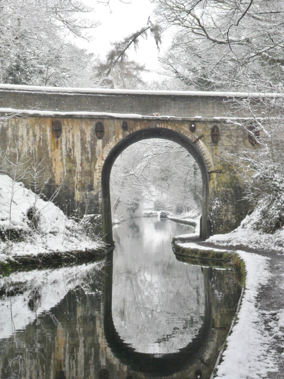 Snow covered bridge over the Shropshire Union Canal, Brewood, Staffordshire, England