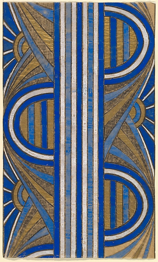 Panel with a Pattern of Sunrises, 1920s. Charcoal, gouache and gold paint. Unknown artist. France. Via metmuseum.org