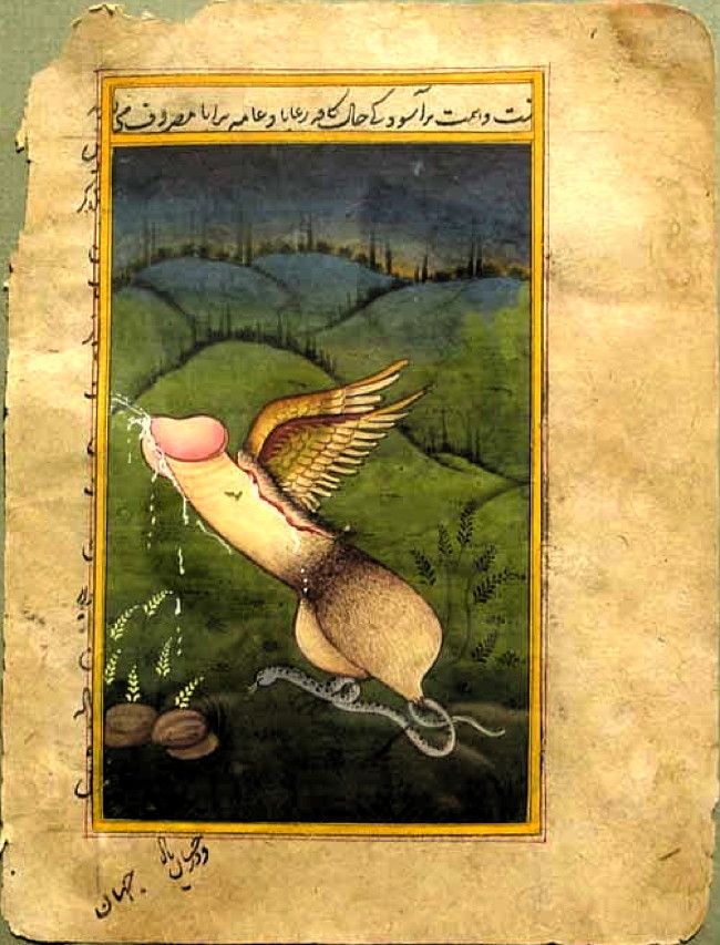 langoaurelian: Anonymous artist, allegorical winged penis. Persian19th century Source: herzogvonbeaverhausen