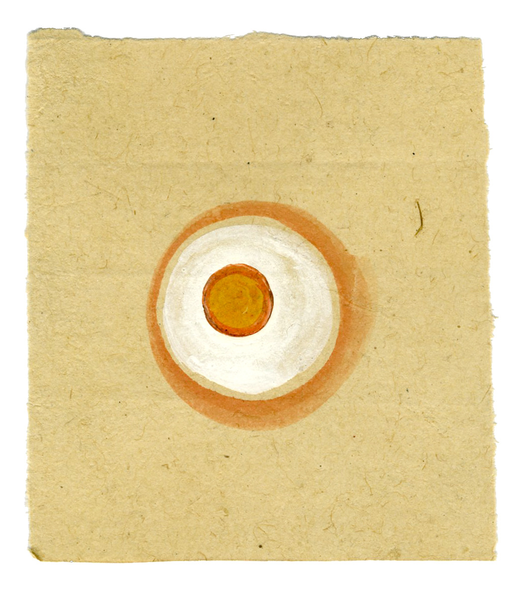 Natural pigments (hand-ground colors: including minerals, mother of pearl, coral, tree resin, vegetable pastes) on vintage paper