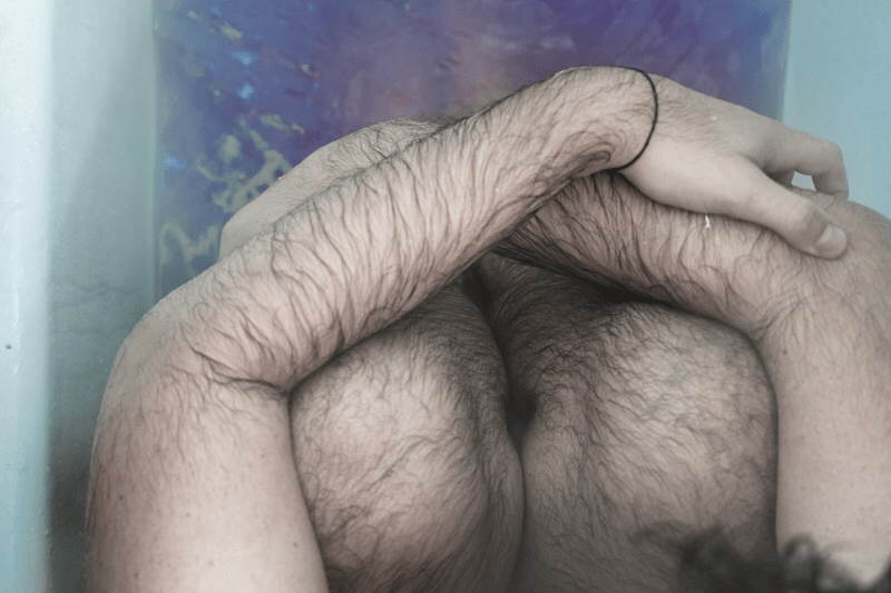 Very interesting reveal. Particularly so because of the pose, but also because of the flat large dark nipple and the large amount of wispy nipple hairs. Excellent contribution (!)(!)(!)