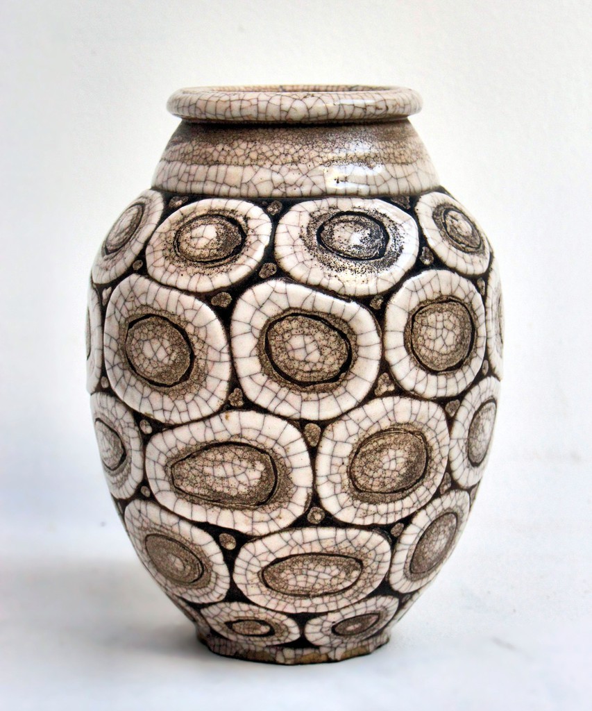 Abstract crackle-glazed ceramic vase by René Buthaud