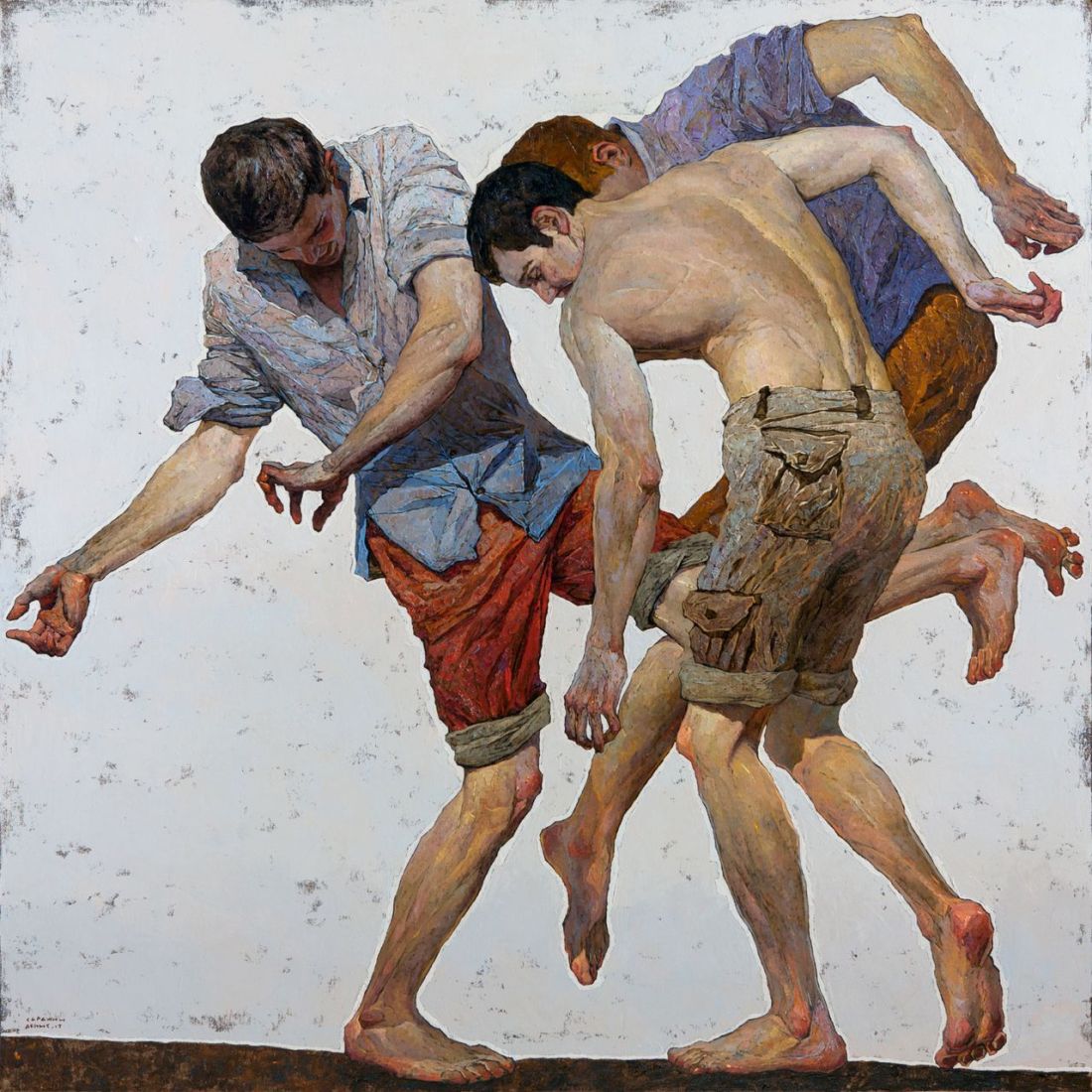 thunderstruck9: Denis Sarazhin (Ukrainian, b. 1982), Dancing Men No. 4, 2017. Oil on canvas, 43 x 43 in. Source: thunderstruck9
