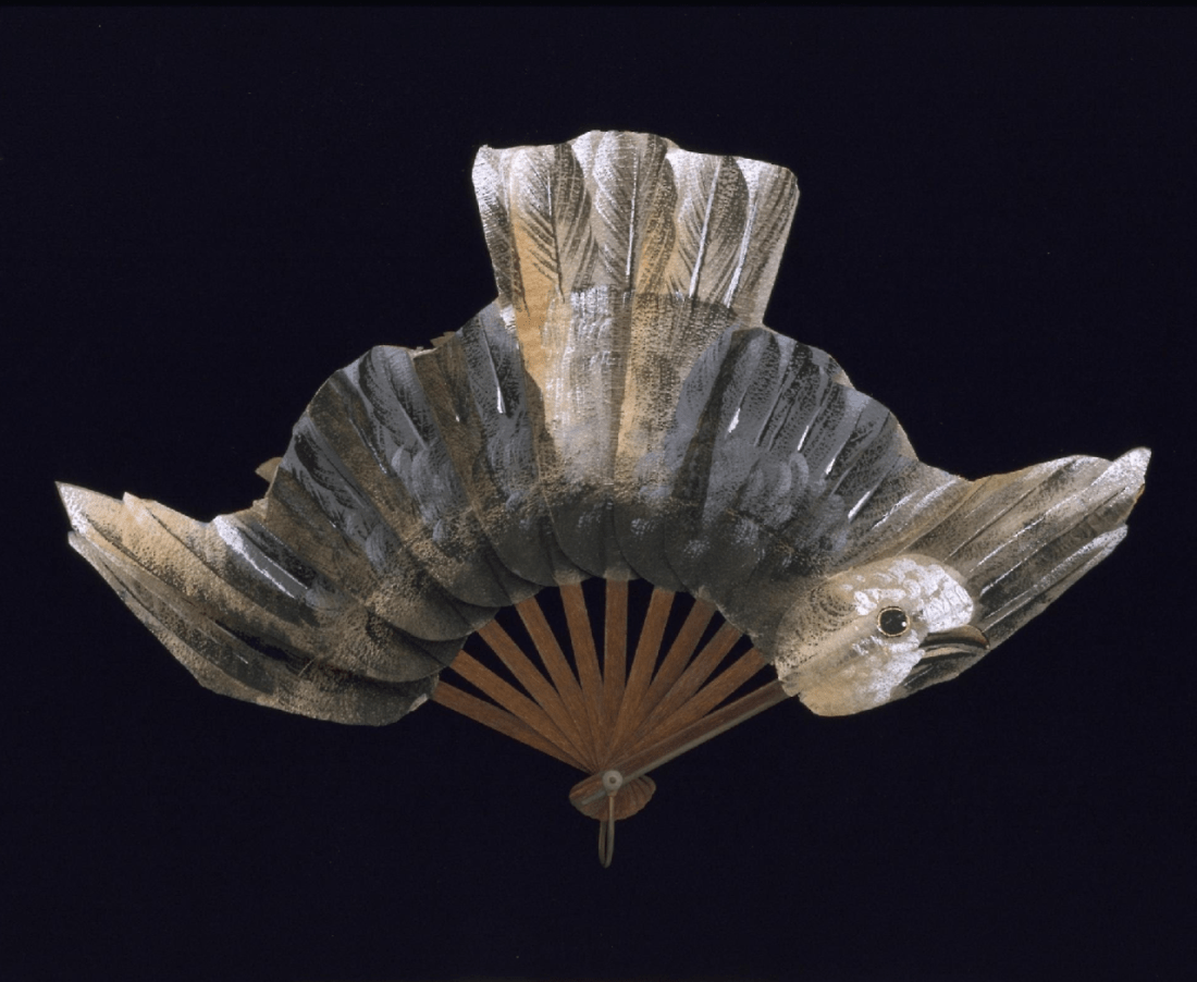 Fan made of textured paper painted with gouache, and cedar wood